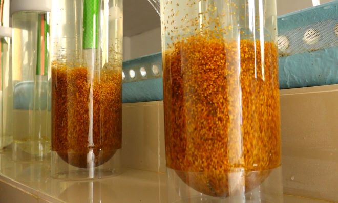 Alevines de alta calidad se encuentran a disposición de los productores acuícolas La Estación Pesquera Ahuashiyacu cuenta con un moderno laboratorio para la producción de semilla de Tilapia, con el uso de reproductores mejorados genéticamente procedentes de Costa Rica. Esto forma parte de la estrategia de revolución productiva que impulsa el Gobierno Regional de San Martín, la cual busca producir seis millones de alevines al año, a fin de incrementar la producción de los acuicultores de la región, a quienes se les brinda asistencia técnica, capacitación y formalización a través del Proyecto Tilapia. En dicho laboratorio se realiza la incubación de los huevos de tilapia, recolectados de los estanques de apareamiento; luego de la recolección, estos pasan a un proceso de aclimatación, desinfección y luego se siembran en las 24 jarras McDonald para su incubación y eclosión por un periodo de 3 a 5 días, dependiendo de la temperatura del agua que se maneje en el momento del proceso. Posteriormente, las larvas son recolectadas en bandejas de fibra de vidrio hasta la reabsorción total del saco vitelino; cabe precisar que la alimentación artificial se inicia cuando las larvas se encuentran al 50% de este proceso. En la actualidad contamos con cepas importadas de sexo mixto y también con la tecnología de súper machos para producir alevines de tilapia 100% machos sin la utilización de hormonas, afirmó el biólogo Manuel Cedano, especialista del laboratorio de la mencionada estación. “En la Estación Pesquera Ahuashiyacu nos dedicamos a la producción de semilla de tilapia durante todo el año y los acuicultores interesados en comprar se pueden acercar sin ningún problema, nosotros los vamos a atender. Los alevines que se comercializan varían entre 0.5g -1g de peso promedio”, precisó. Cabe precisar que el laboratorio de tilapia ofrece alevines de calidad y de rápido crecimiento, a los que pueden acceder los productores interesados acudiendo a la misma estación pesquera o a la Dirección Regional de la Producción para realizar sus pedidos o solicitar asesoría técnica de los especialistas. |